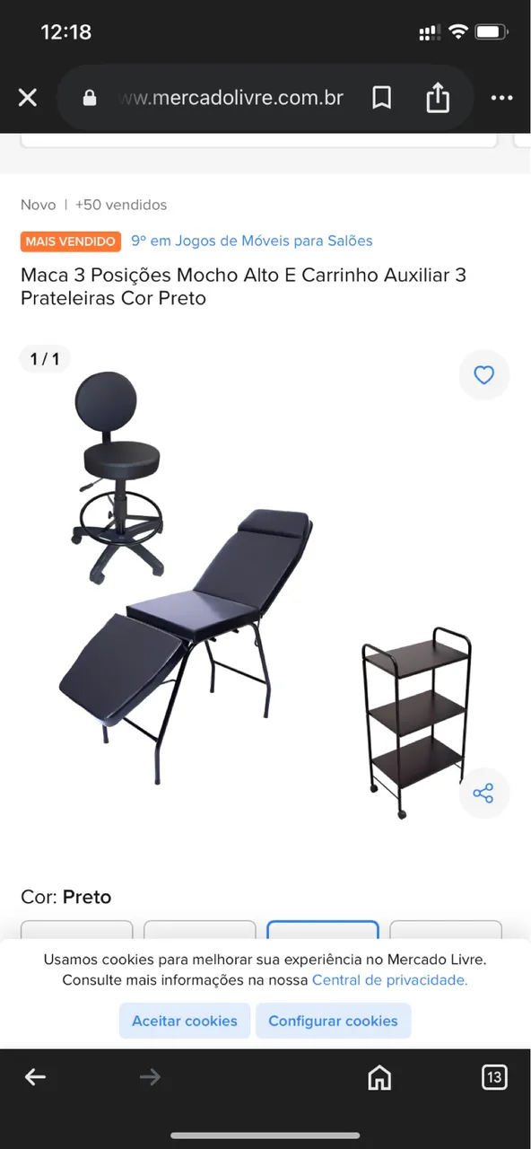 Conjunto completo para seu salão! Maca com 3 posições, mocho alto e carrinho auxiliar com 3 prateleiras. Conforto e praticidade em um só lugar.