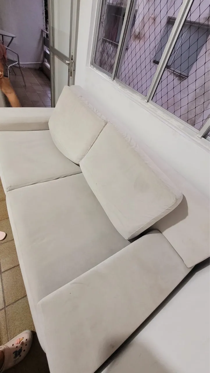 Sofá 2 lugares na cor off white Pés de ferro Mede 2,00x70 Espaçoso muito bom . Está limpo
