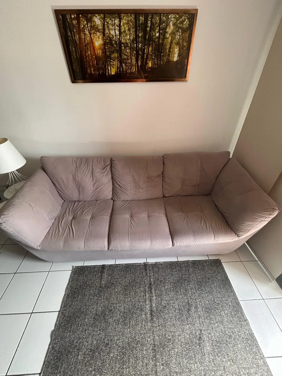 Sofá confortável de 3 lugares, ideal para relaxar e decorar sua sala. Design moderno e elegante, perfeito para criar um ambiente acolhedor., na cor cinza, material tecido / veludo, íntegro, sem rasgos, bem conservado.