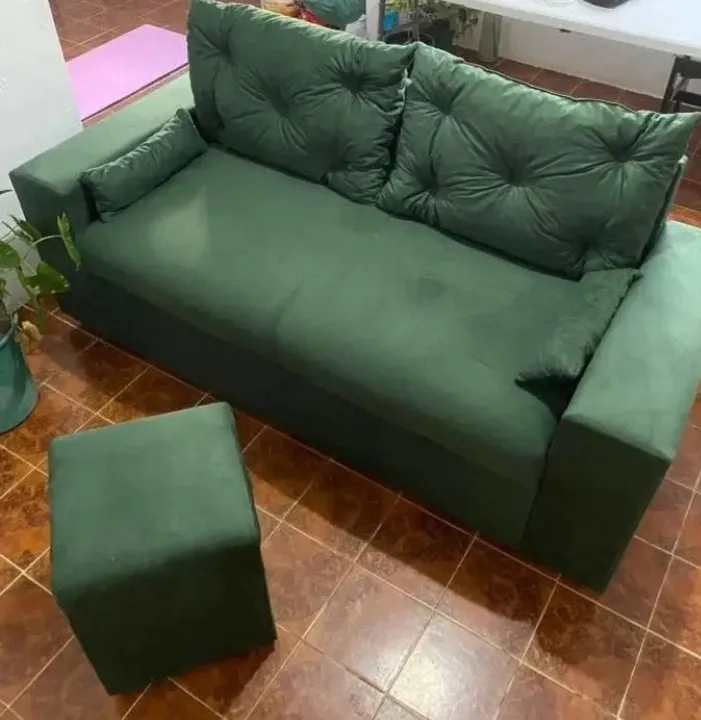 Sofa almofadado + 1 puff de fábrica Consulte sua taxa de entrega Aceitamos cartões de crédito com juros, débito, pix ou dinheiro Garantia 3 meses Pagamento na hora da entrega