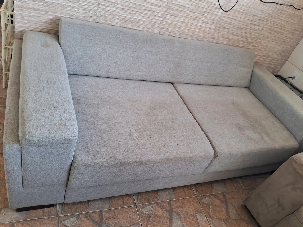 Sofá confortável e elegante para a sua sala. Perfeito para relaxar e receber visitas. Design moderno e cores neutras que combinam com qualquer ambiente. Obs: precisando apenas lavar. Está empoeirado.