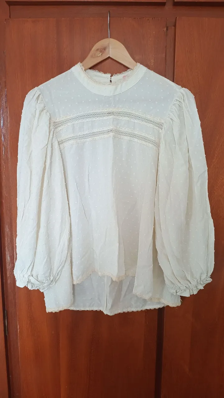 Bata com renda e mangas compridas, cor baunilha e detalhes delicados. Perfeita para ocasiões especiais. Está como nova, usada uma única vez.