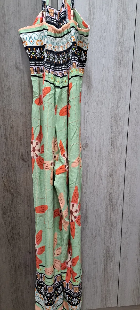 Lindo macacão com estampa floral vibrante, perfeito para um visual estiloso e confortável.