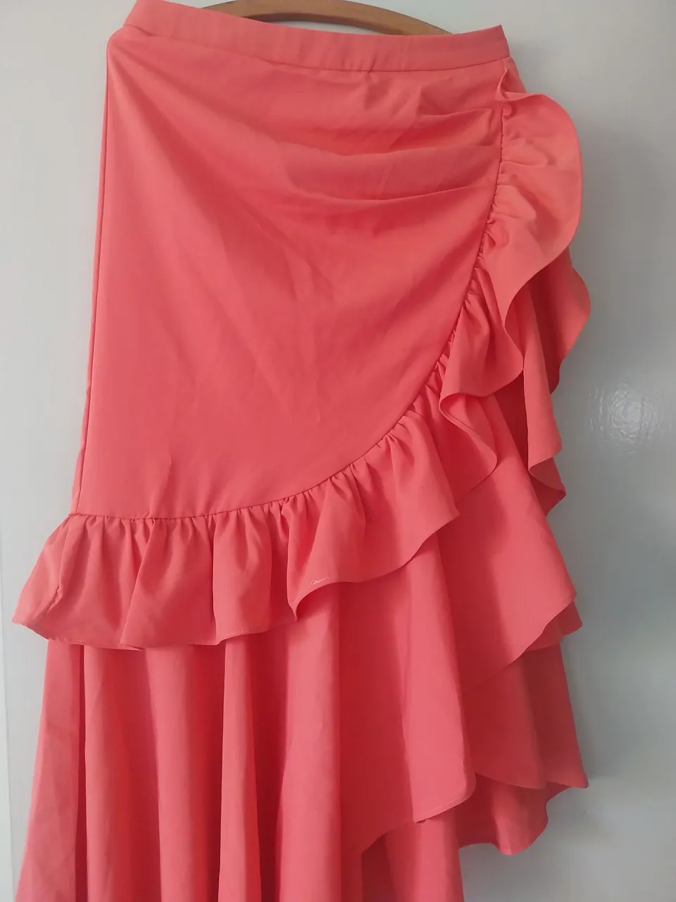 Linda saia com babados em um tom vibrante de laranja. Perfeita para um visual estiloso e cheio de movimento!