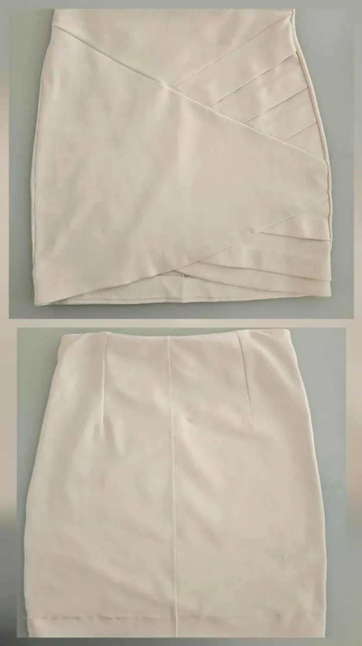 Saia off-white, justa, que valoriza o xoepo feminino. Perfeita para diversas ocasiões