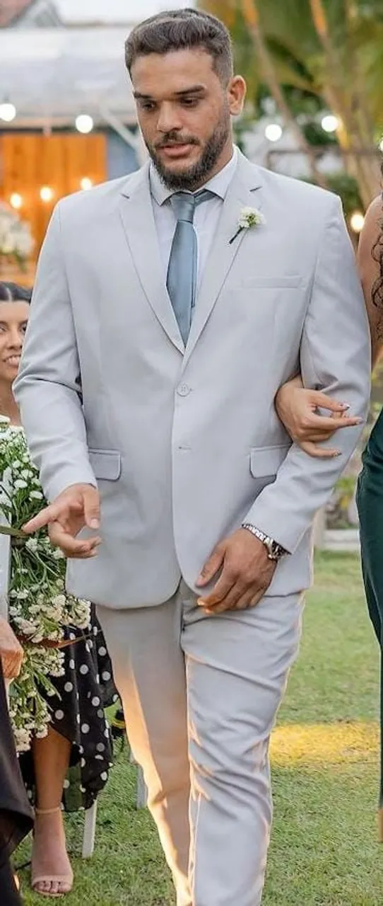 Cor cinza claro/médio, usado apenas uma vez, terno tamanho 56, porém veste bem quem usa 54, calça regulei para 44, porém pode diminuir ou aumentar para até 48.