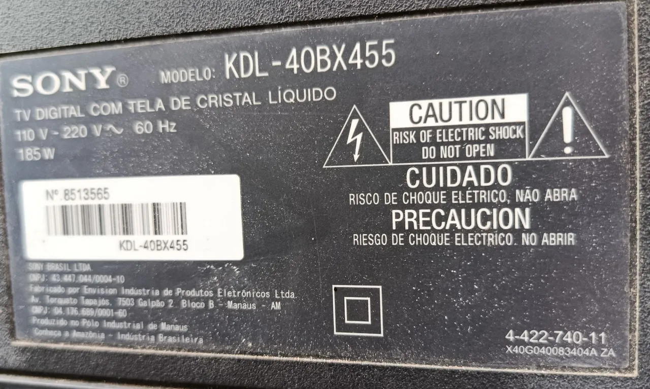 Tv Sony 40 POLEGADAS com defeito. A TV liga mas logo em seguida reinicia, para quem quiser para retirada de peças é uma boa opção.