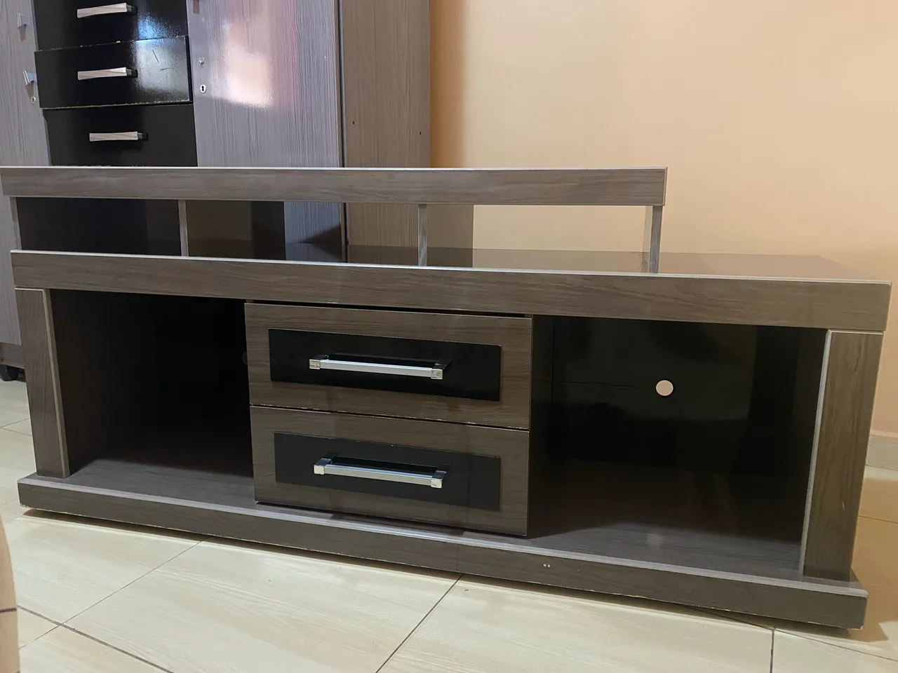 Apresentamos este rack usado, perfeito para organizar sua sala com estilo e funcionalidade. Com design moderno e elegante, este móvel oferece espaço para sua TV, aparelhos eletrônicos e objetos de decoração. Adicione um toque de sofisticação ao seu ambiente com este rack prático e charmoso!